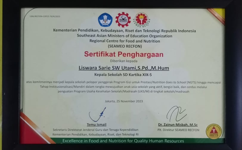 Komitmen SD Kartika XIX-5 Cimahi Sebagai Satuan Pendidikan yang Peduli dengan Gizi dan Nutrisi Peserta Didik Melalui Program SEAMEO REFCON